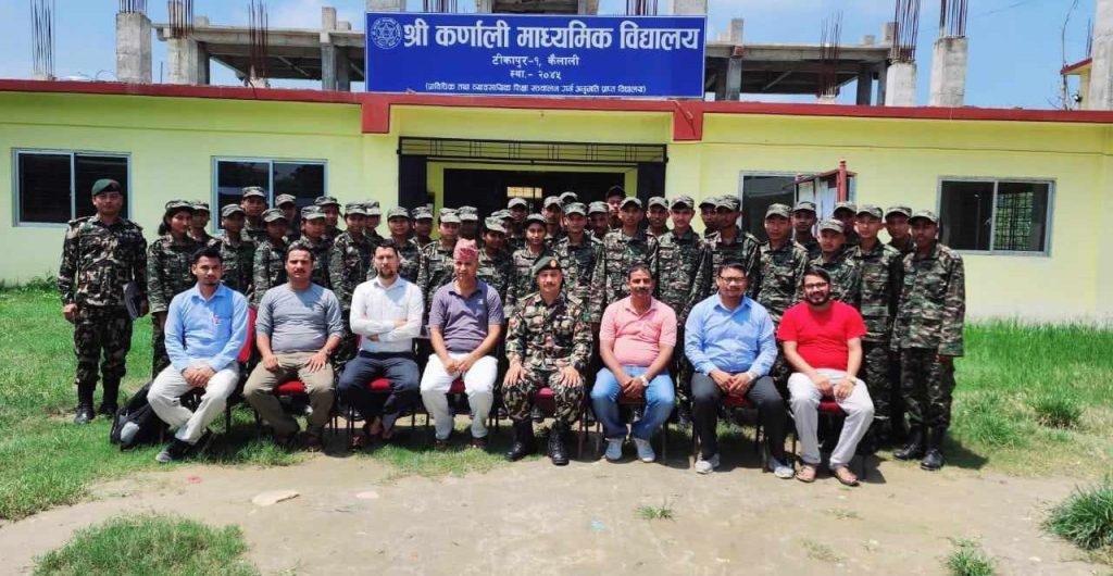 टीकापुर । टीकापुर नगरपालिका वडा नं. १ ब्लक नं. ११ स्थित कर्णाली माध्यमिक विद्यालय का ४६ जना विद्यार्थीहरु नेपाली सेनाको एनसीसी (राष्ट्रिय सेवा दल) को तालिममा सहभागि भएका छन् ।