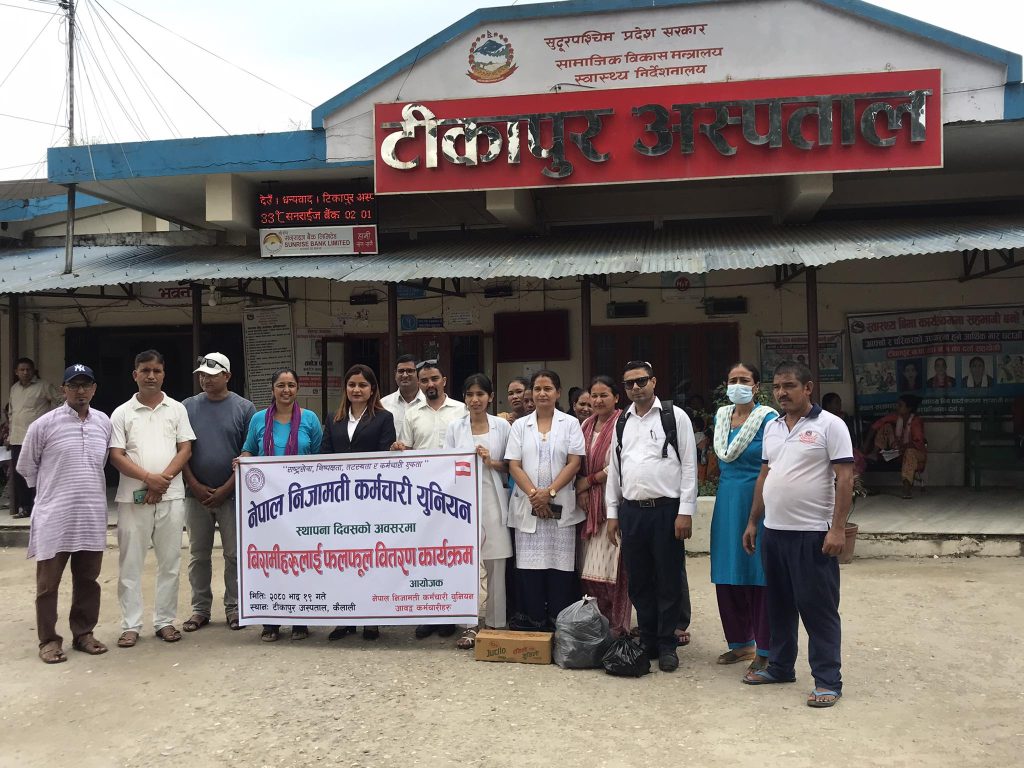 युनियनकोे २१ औं स्थापना दिवशको अवशरमा टीकापुरक्षेत्रमा आबद्ध नेपाल निजामती कर्मचारी युनियनसंग सम्बन्धित कर्मचारीहरुले अस्पतालमा फलफुल बितरण गरेका हुन ।