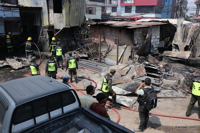 स्थानीयवासी, प्रहरीको सहयोगमा आगलागी डेढ घण्टापछि नियन्त्रणमा आएको काठमाडौँ प्रहरीले जनाएको छ ।