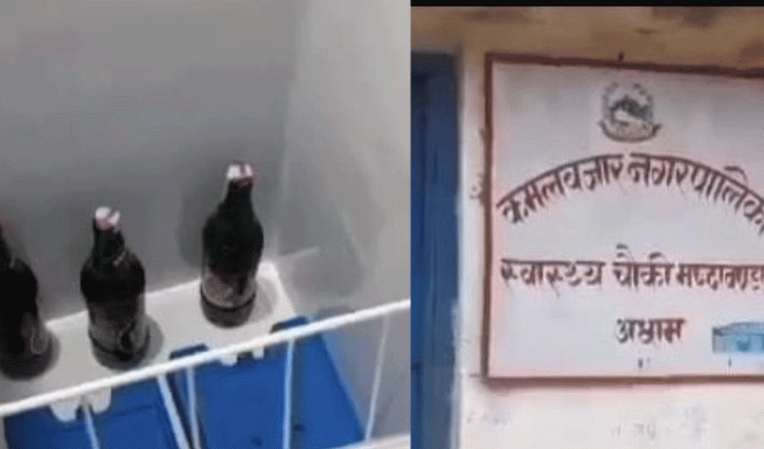 अछाम । अछामको एक स्वास्थ्य चौकीमा फ्रिजभित्र बियरका बोतल भेटिएका छन् ।